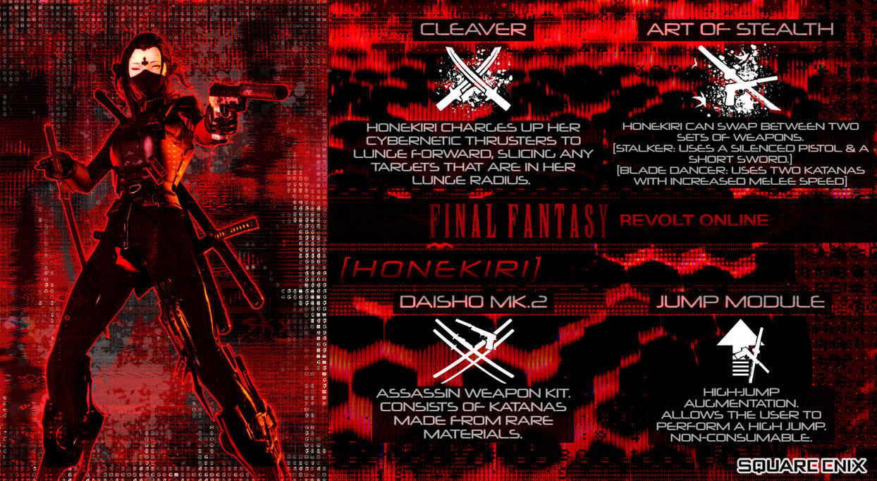 you are able to perform an execution when facing a target's back. gain hp from executing a target. you are able to climb walls.